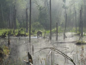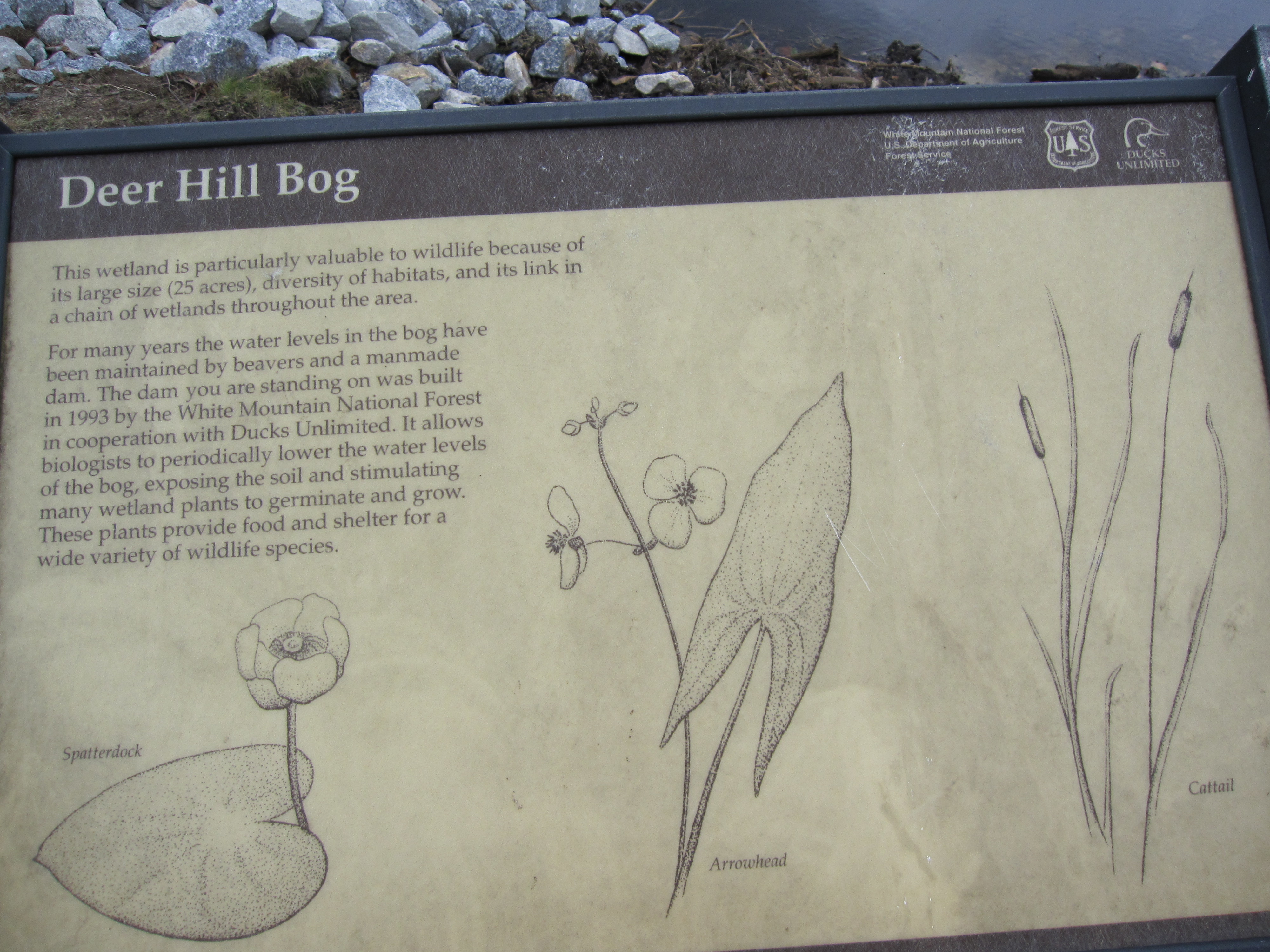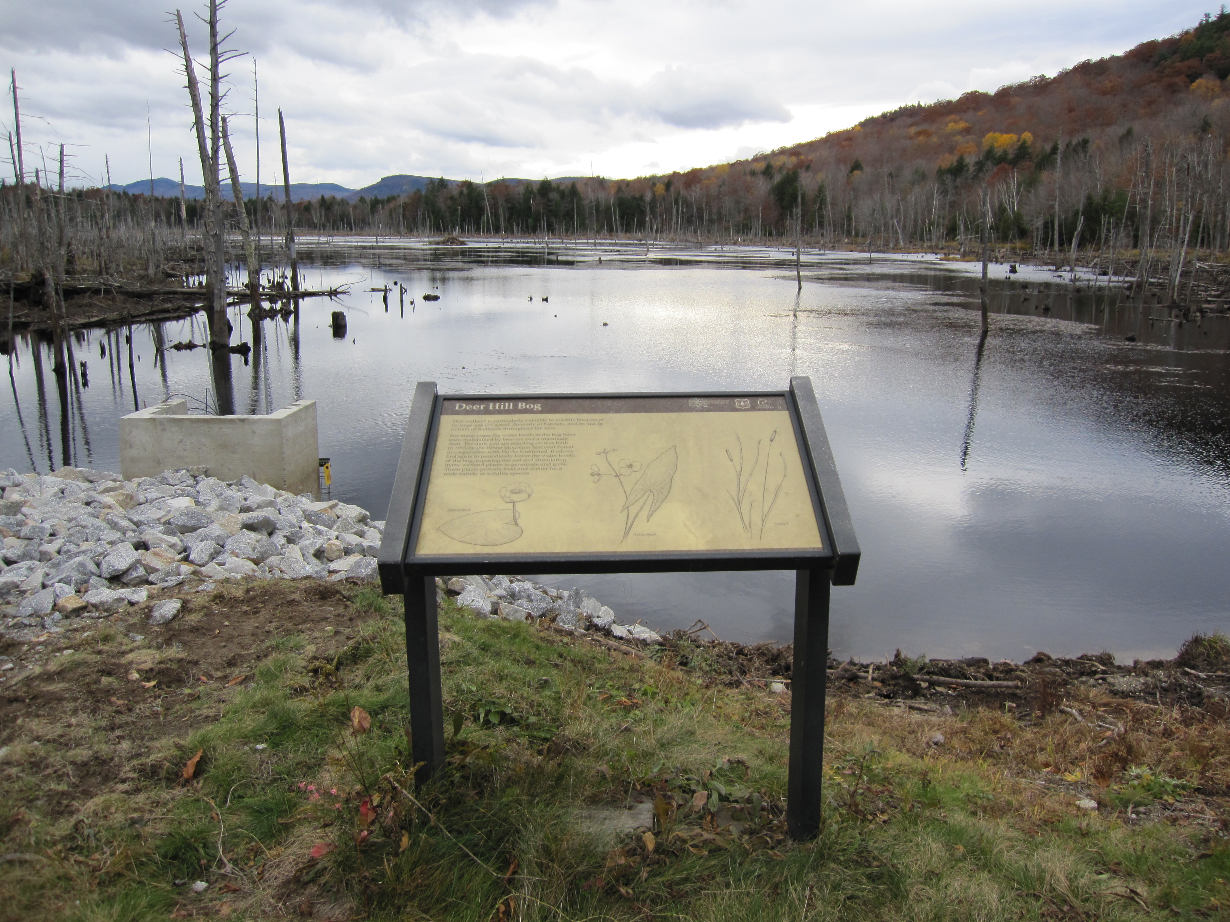 Deer Hill Bog – sign describes collaboration between nature and man.