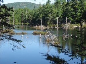 Great blue heron rookery in beaver pond near Holderness, NH.